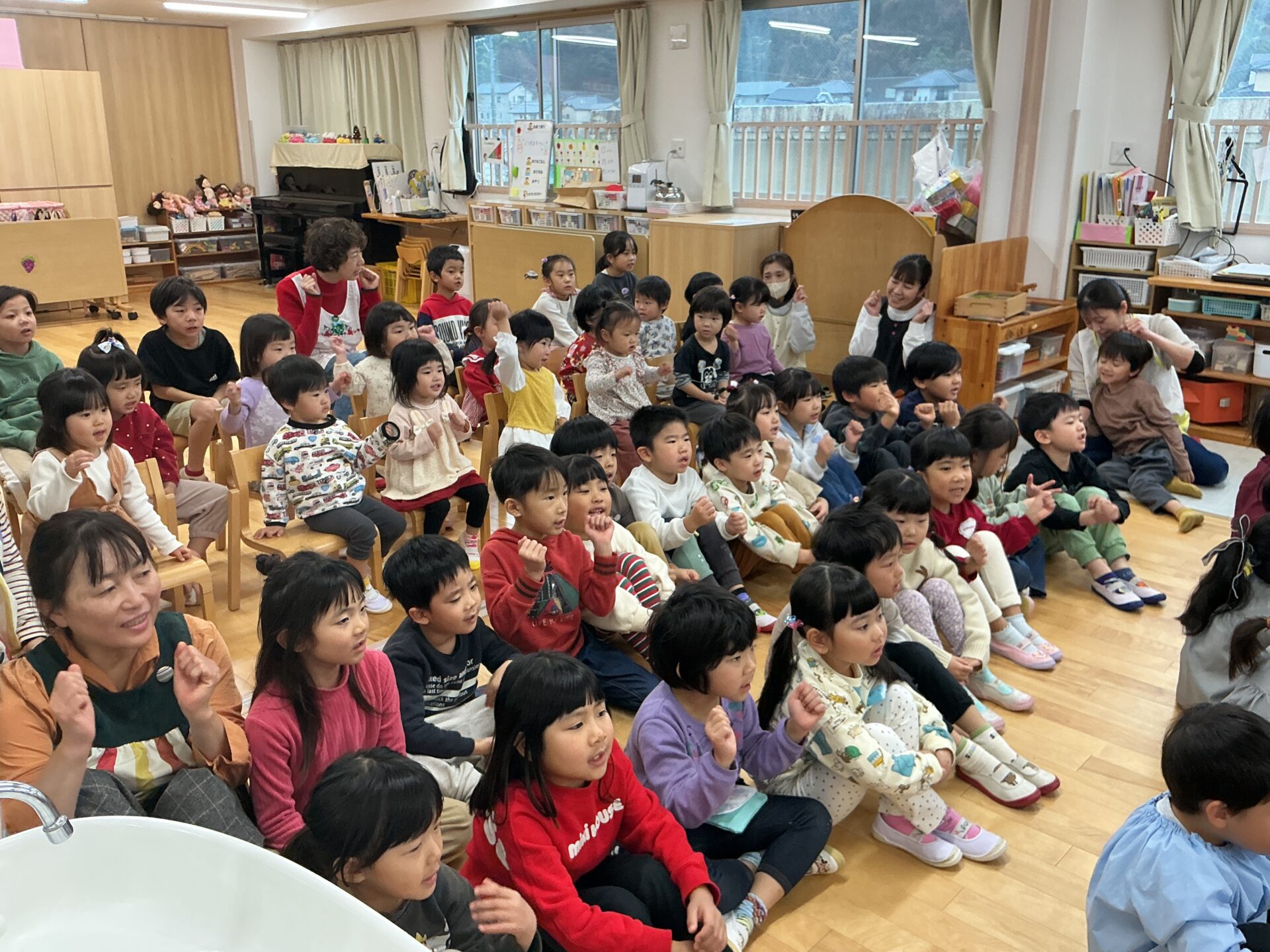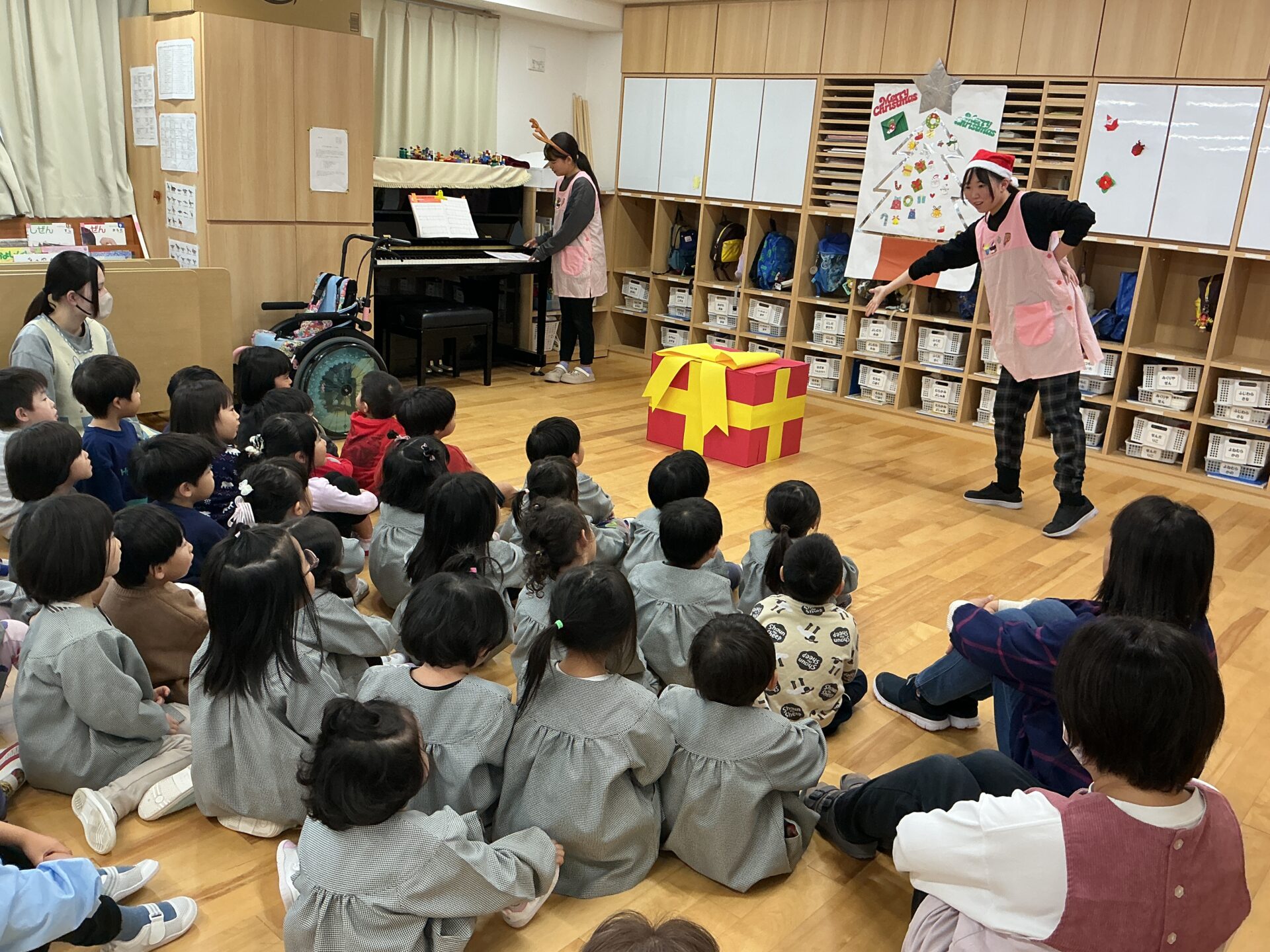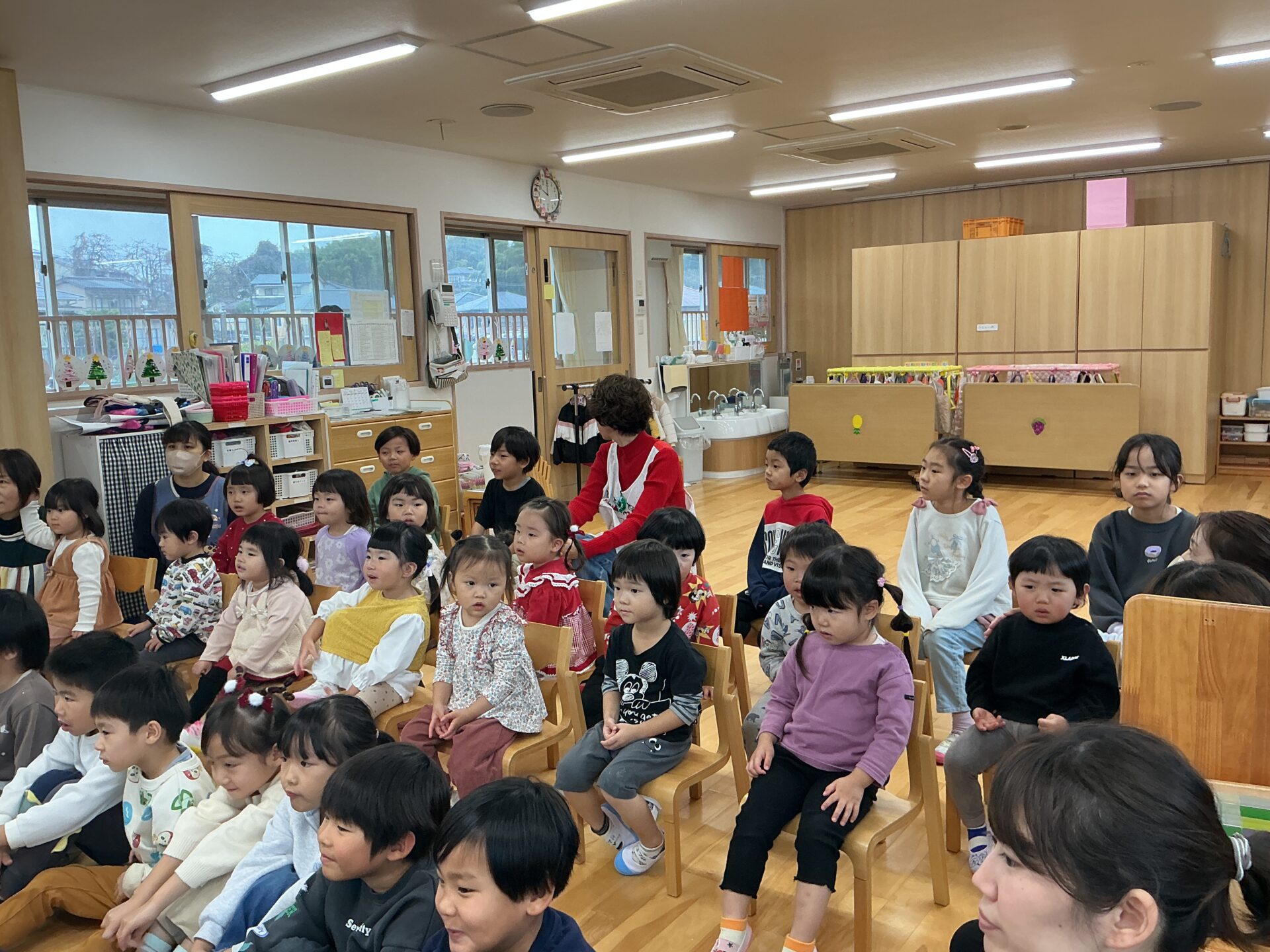 クリスマス会がありました。絵本「大きなかぶ」を題材にしたクリスマスの劇や、手遊び、歌などを楽しみました。サンタさんも登場し、大喜びの子どもたち。各クラスプレゼントをもらい、たくさんの笑顔が見られました。幸せいっぱいのクリスマスになりました。