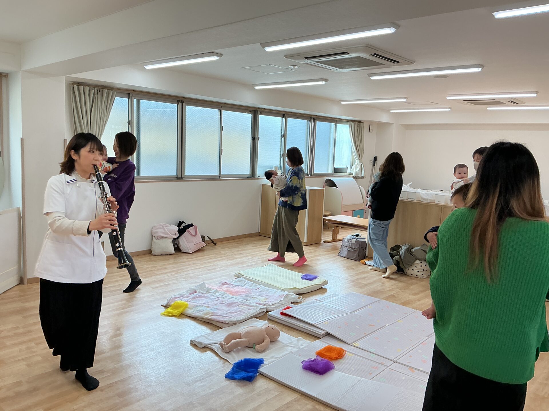 リトミックを取り入れたベビーマッサージでとても気持ちよさそうでした。